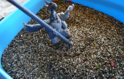 Immergiamo la nostra miniatura nel contenitore con la sabbia.