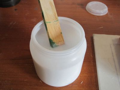 Prima di preparare la miscela ho accuratamente mescolato i 2 componenti per evitare sedimenti alla base. Bastano 2 minuti e, soprattutto, bisogna stare attenti a NON utilizzare lo stesso attrezzo per la mescola per i 2 barattoli.