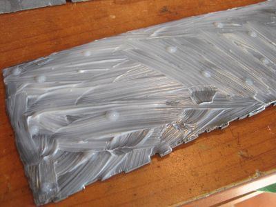Il fondo per questi pezzi l' ho realizzato con un 20% di colla vinilica ( Vinavil ) ed un 80% di color grigio molto scuro.